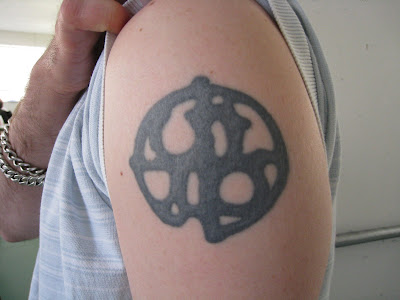 My first tattoo is of a pair of tribal dolphins jumping out of water. The dolphins are in a circle while their tails form a heart and the water a butterfly. As you can tell many symbols in all of this. I see this as a representation of life (circle), intelligence (dolphins), love (heart), uniqueness (butterfly) and they are tribal as that is my heritage. I was born of the Columbia River Plateau People. I got this tattoo the summer between my Sophomore and Junior year of college at Sacred Art Tattoo in Corvallis. However, I don't remember the woman who did it as she was called upon to do it when the guy I had my appointment with had been fired. Not the best of luck with the artist situation, but I love it all the same.